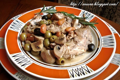 Будем отмечать в маленьком семейном кругу. На ужин приготовила кролика в белом вине с горчичным соусом, с шампиньонами, грецким орехом, оливами и маслинами. Запах стоит невероятный))